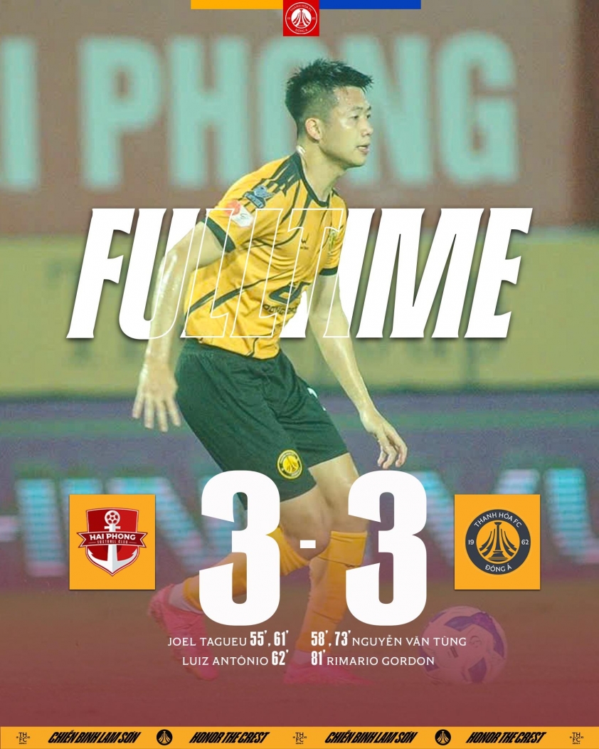 Notably, this historic goal occurred in a match full of emotion. Earlier, Hai Phong FC had taken the lead thanks to a goal from Tagueu early in the second half. Thanh Hoa quickly responded with an equalizer from Van Tung himself, but the home team then scored two more goals to establish a safe 3-1 lead.
